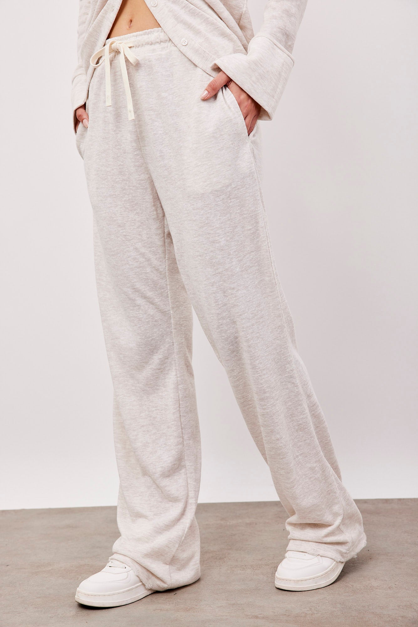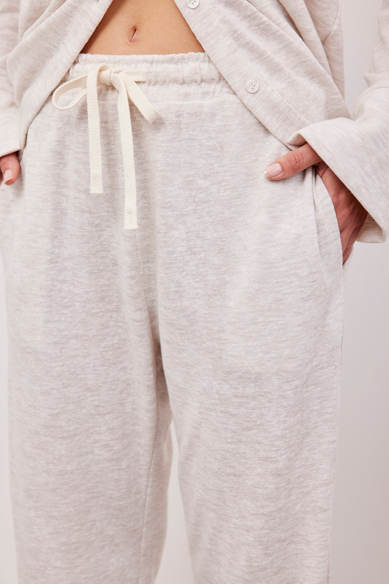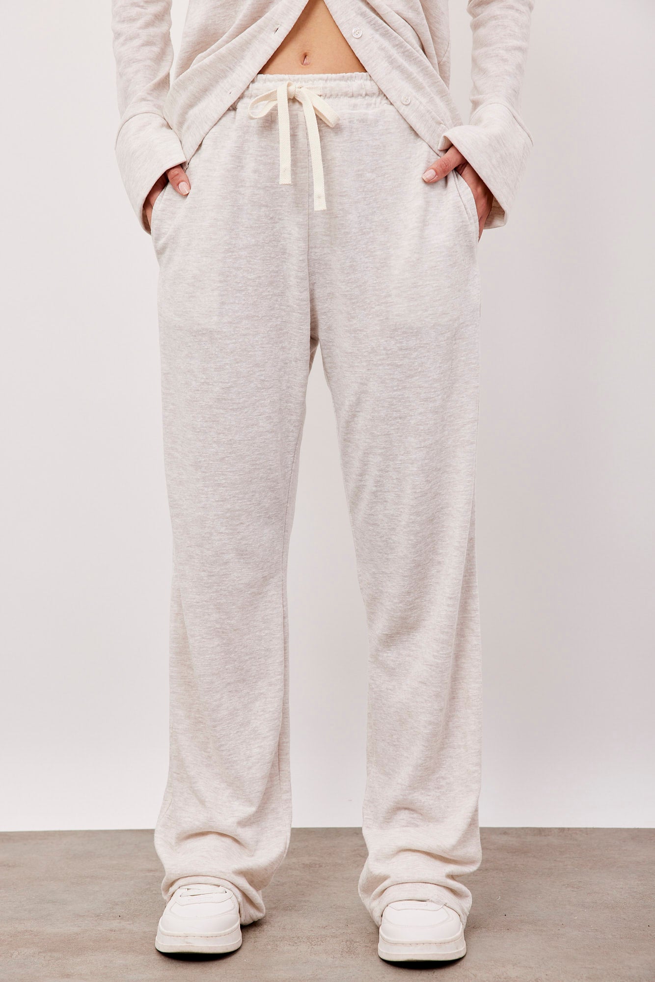 מכנסי נוחות בגזרה משוחררת, עם שרוך וגומי במותן.
