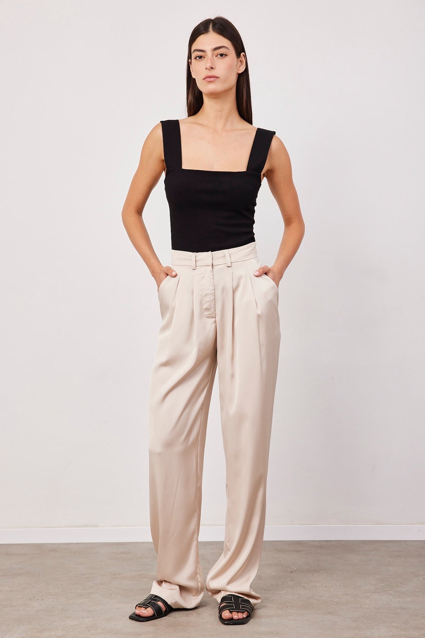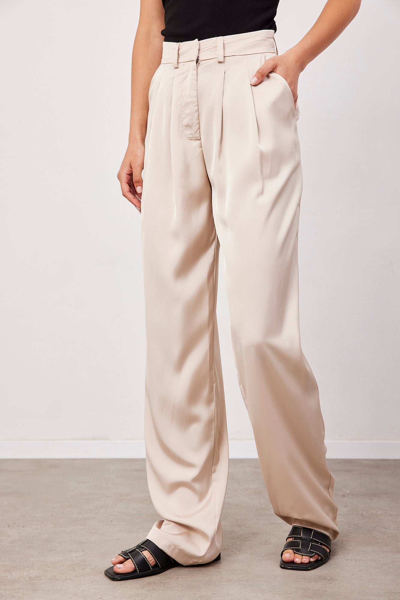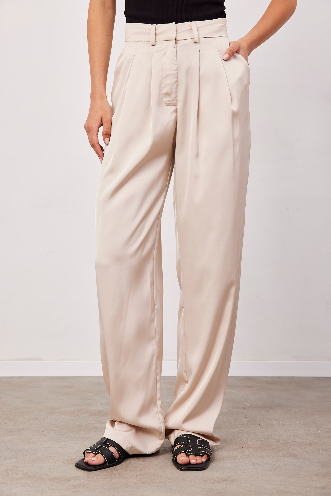 מכנסיים בגזרה מחוייטת עם קפלים, סגירת רוכסן וקרס, עם כיסים