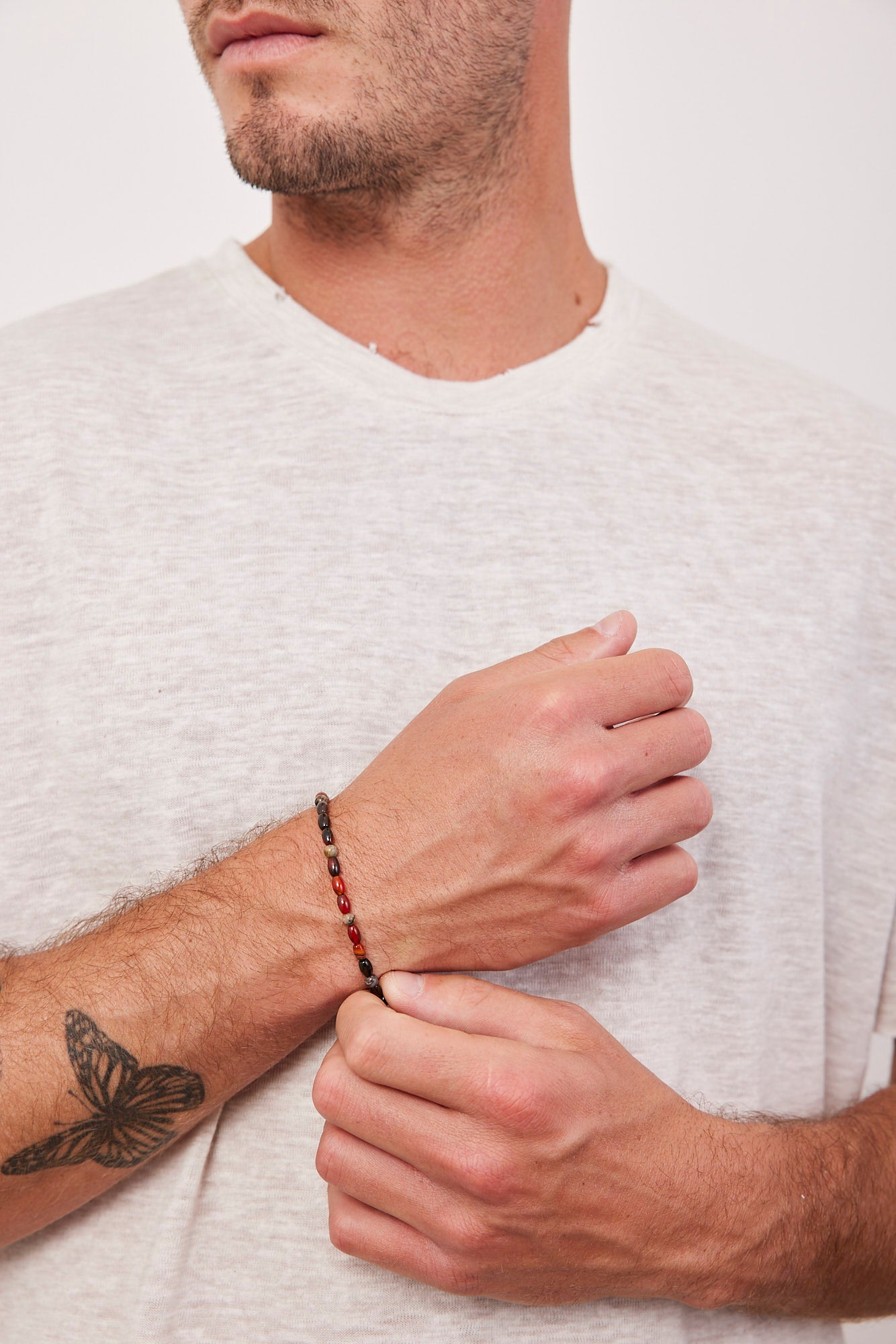 צמיד אבני חן טבעיות בגווני חום-אדמדם