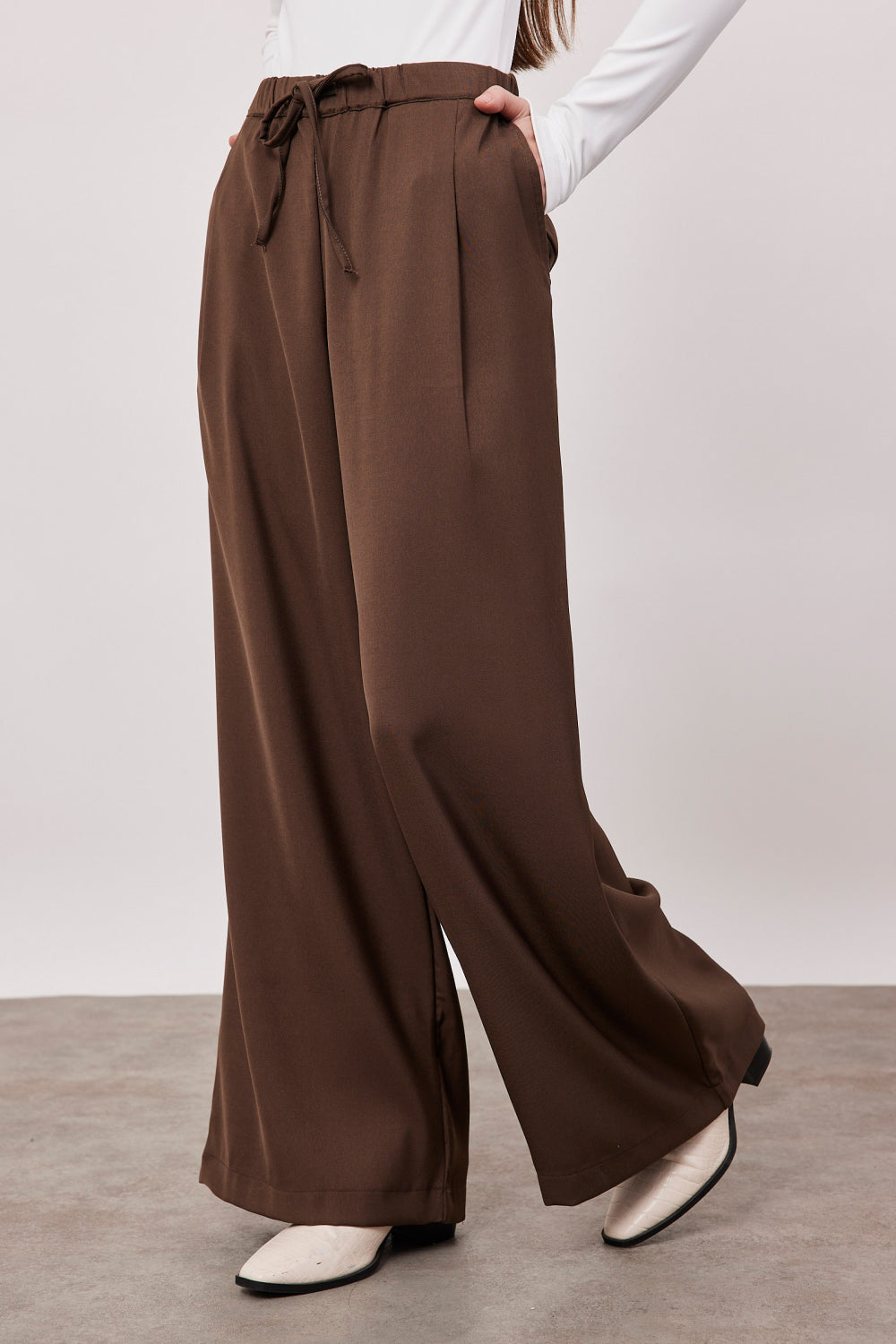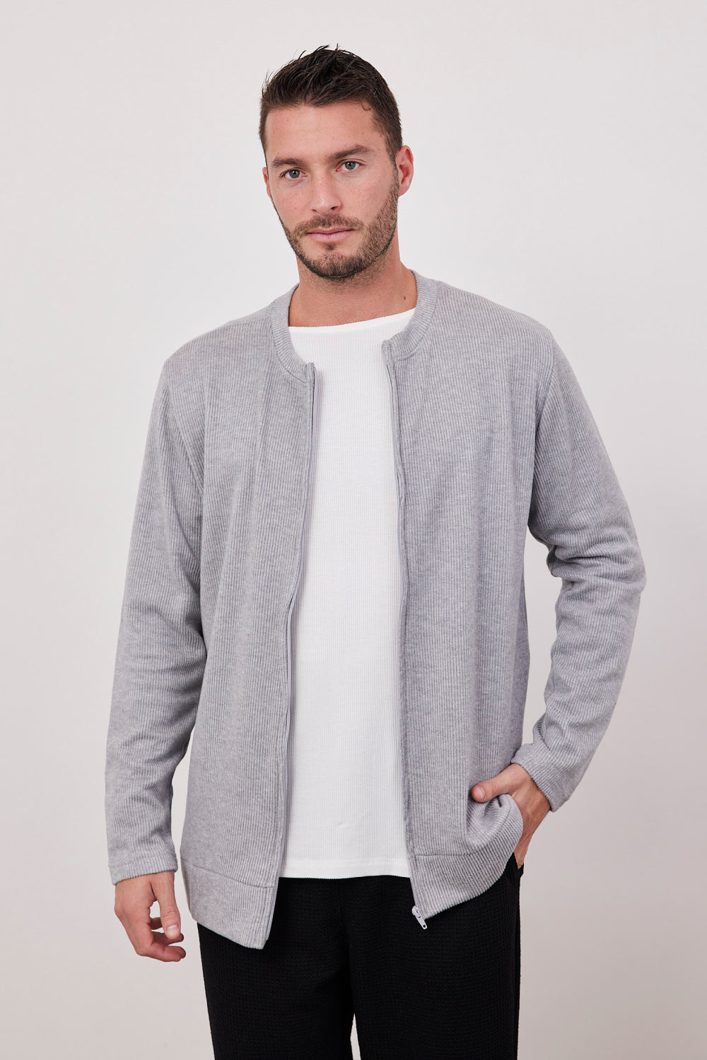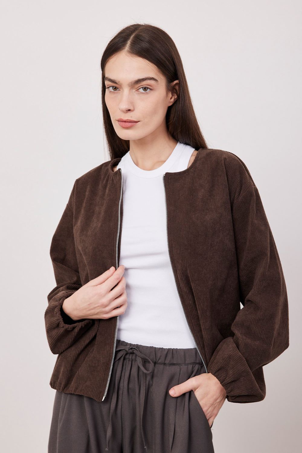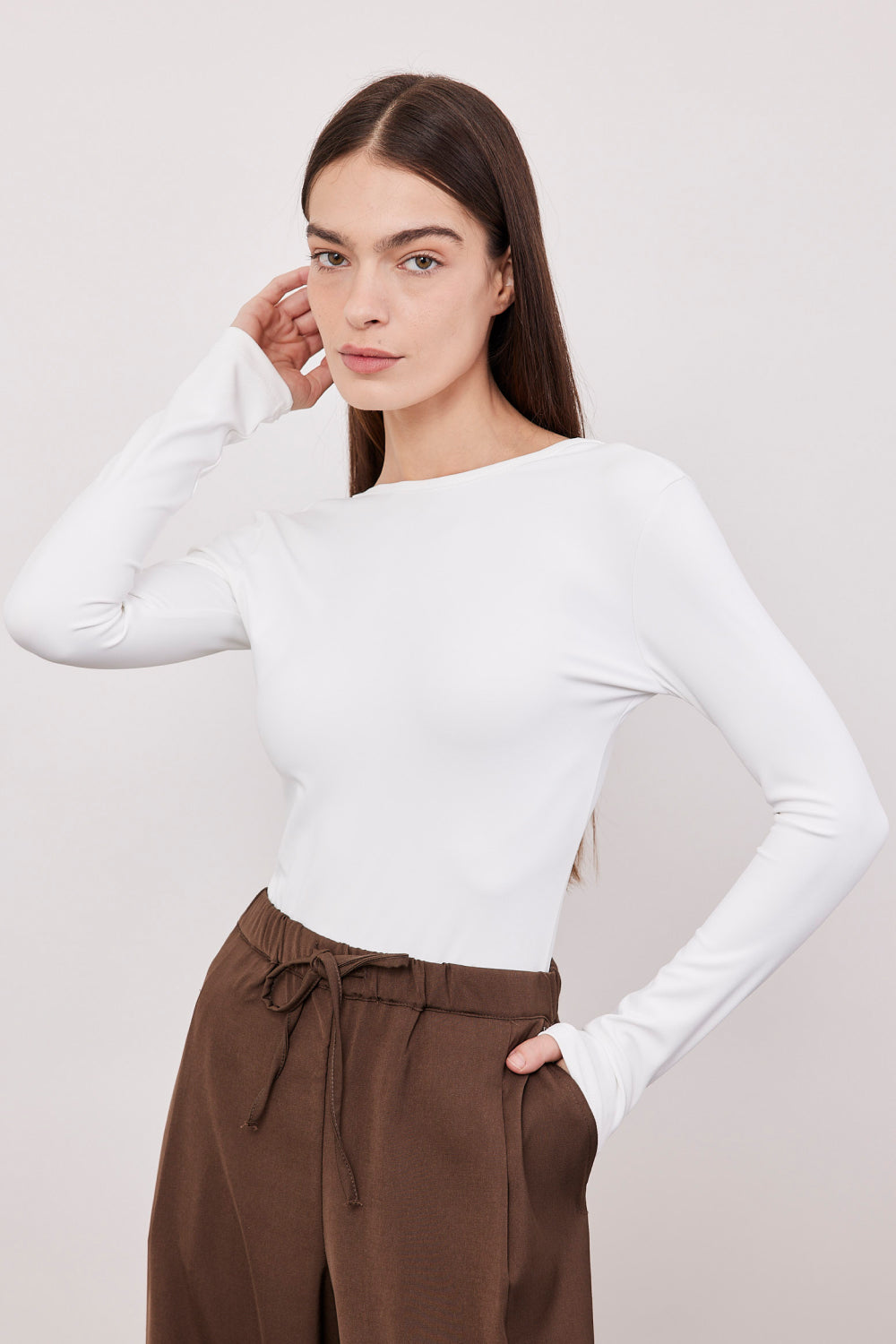 חולצה בגזרת קרופ בסיומת פרומה, עם שרוולים ארוכים.
