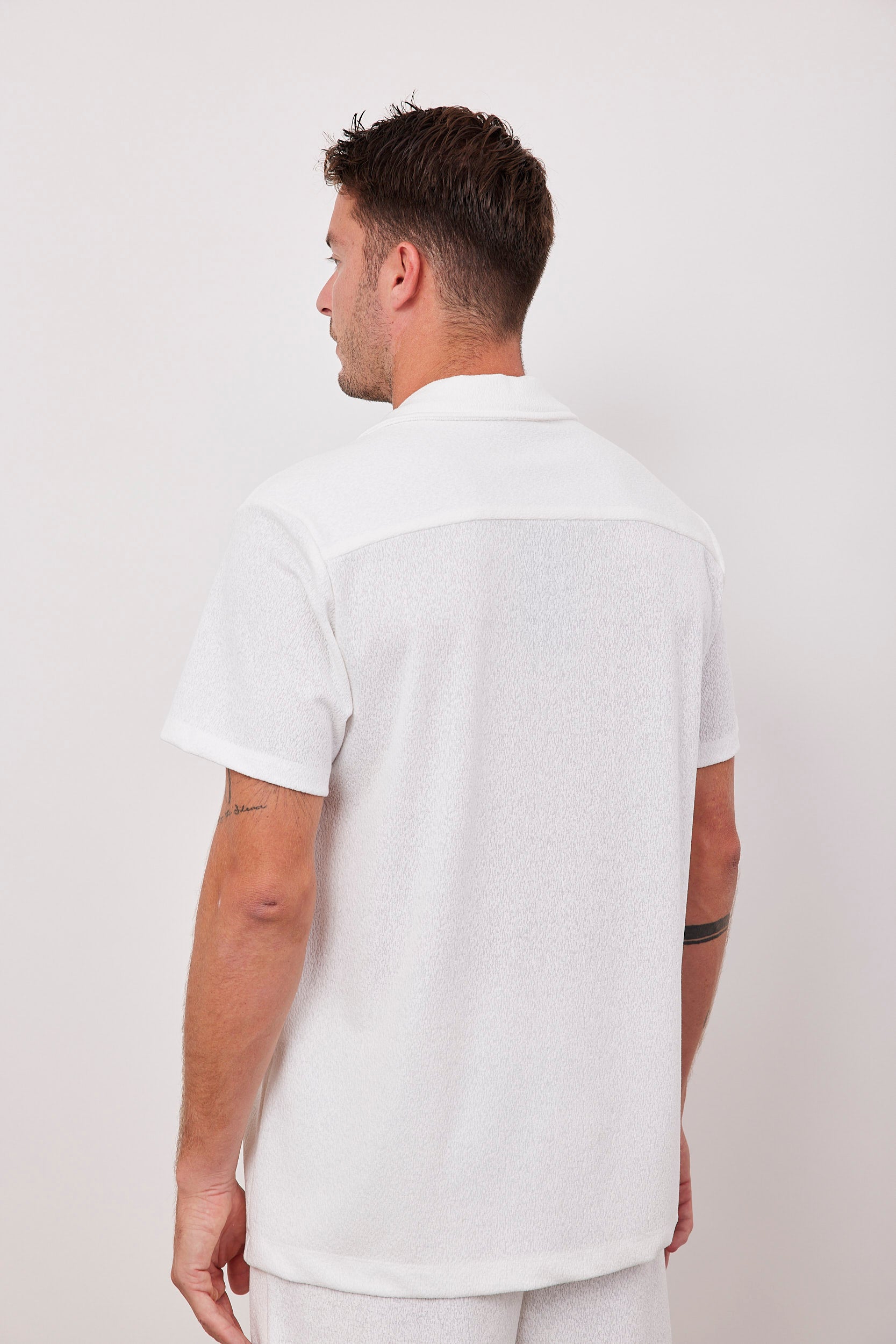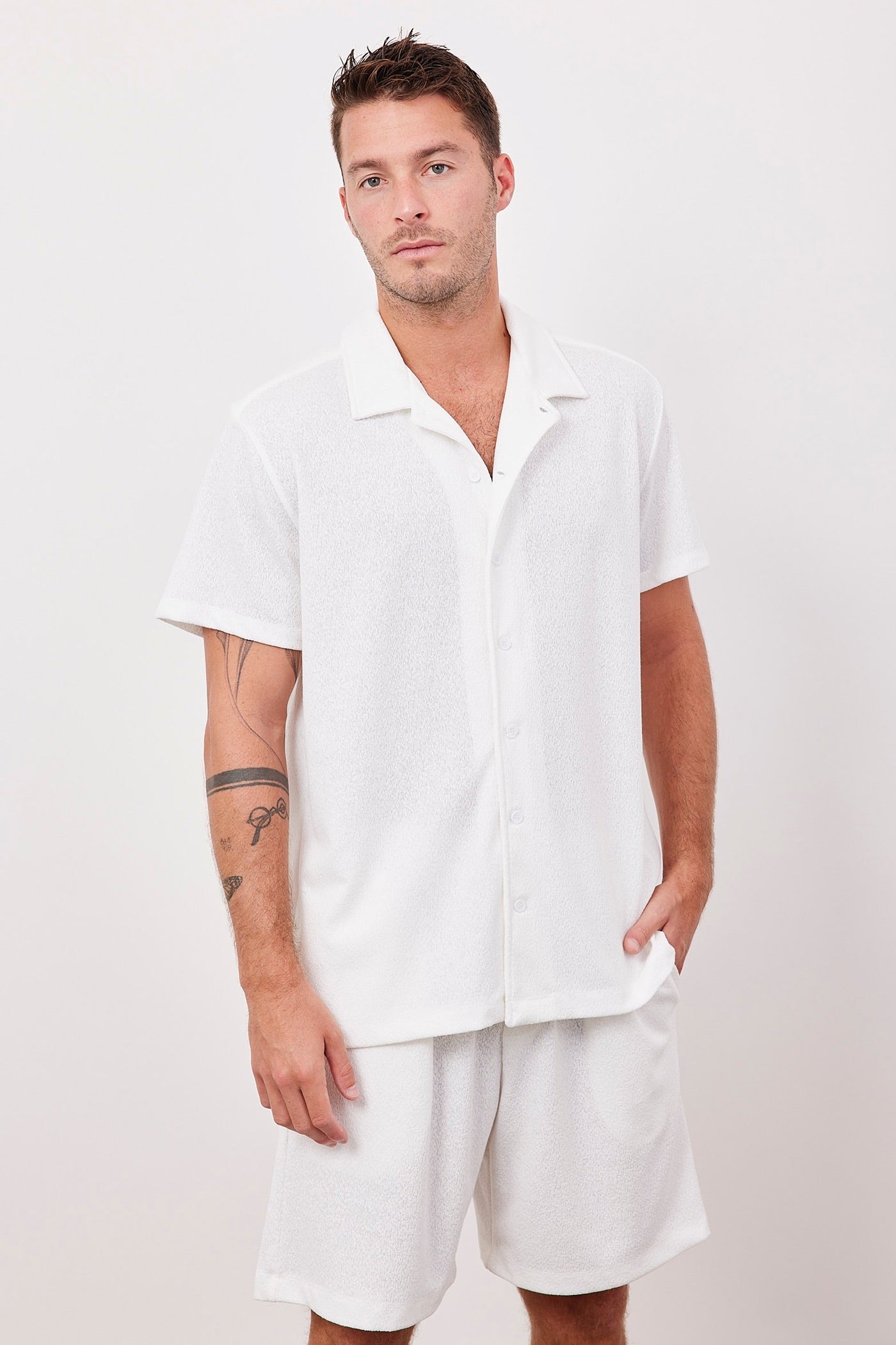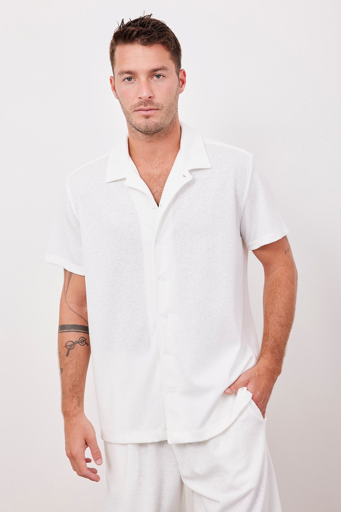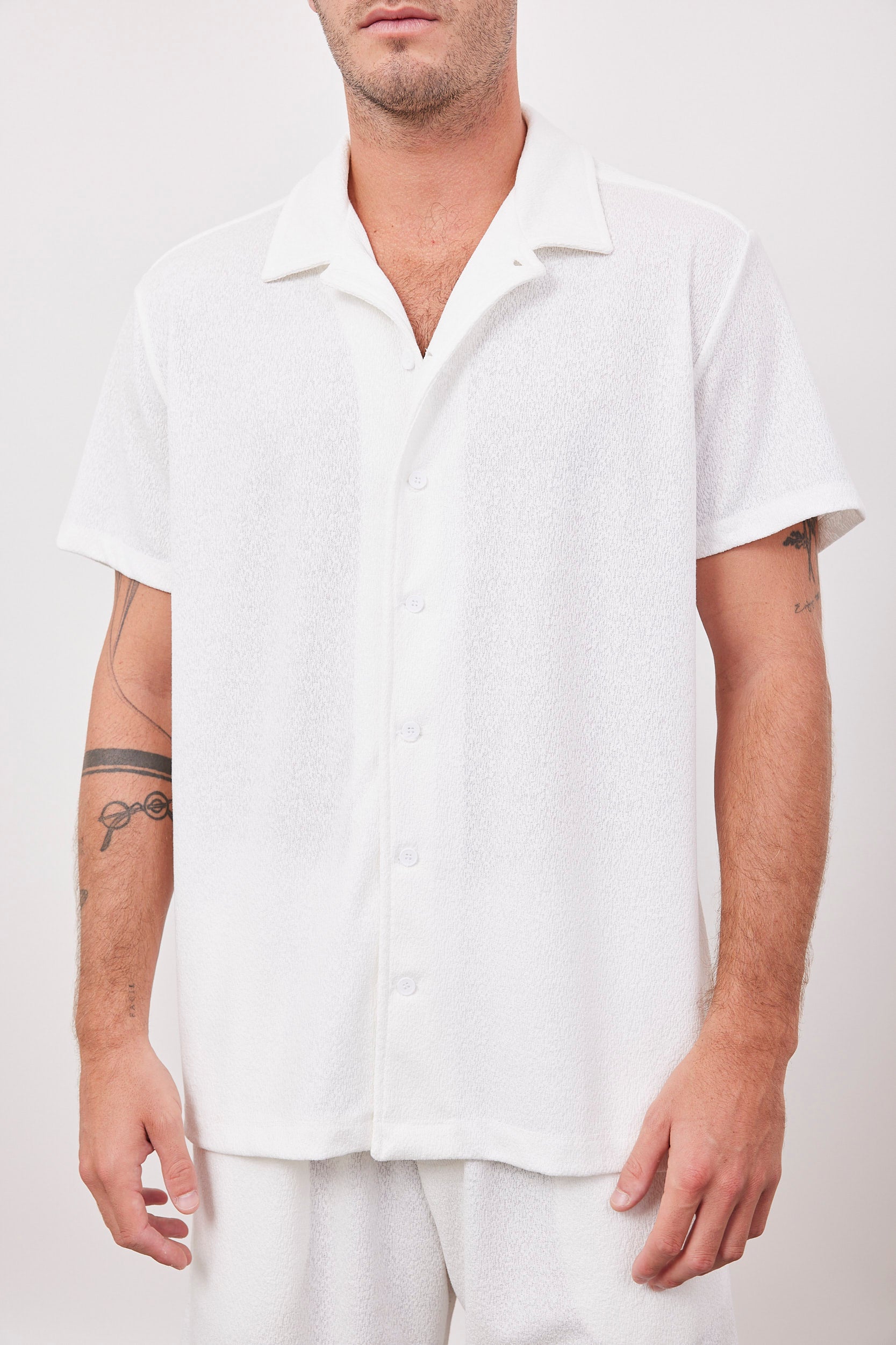 חולצה קצרה מכופתרת עם צווארון מבד מגבת.