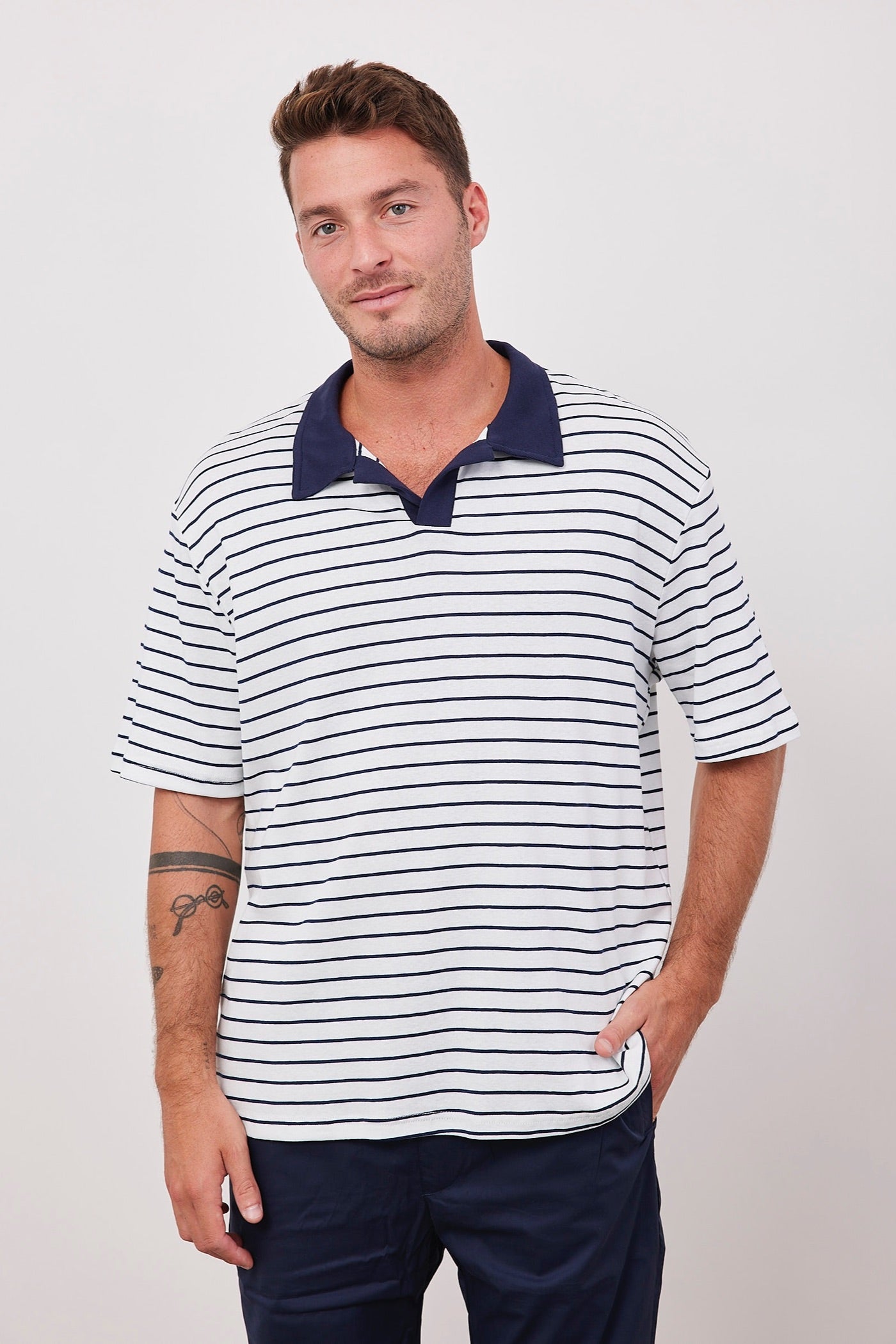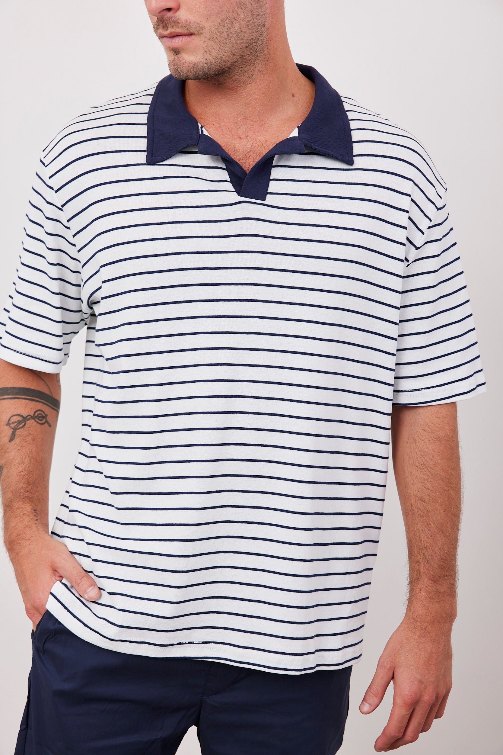 חולצת פסים עם צווארון מובלט